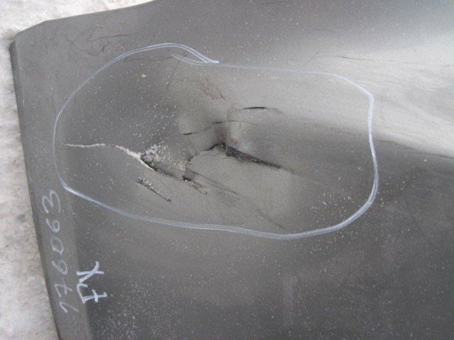 деформация по центру 10/5 см трещина слева 10 см