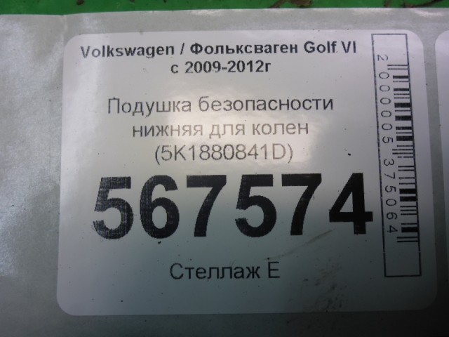 Volkswagen Golf VI с 2009-2012г Подушка безопасности нижняя для колен (5K1880841D)