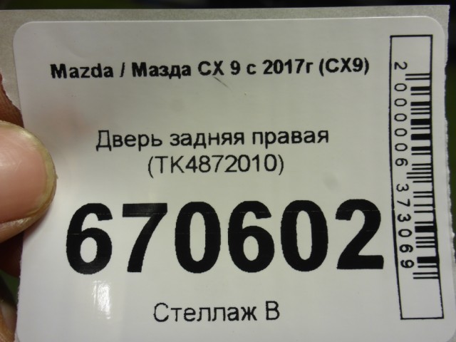 Mazda CX 9 с 2017г (СХ9) Дверь задняя правая (TK4872010)