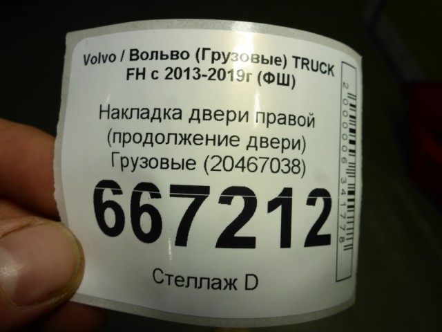 Volvo TRUCK FH с 2013-2019г (ФШ) Накладка двери правой (продолжение двери) (20467038)